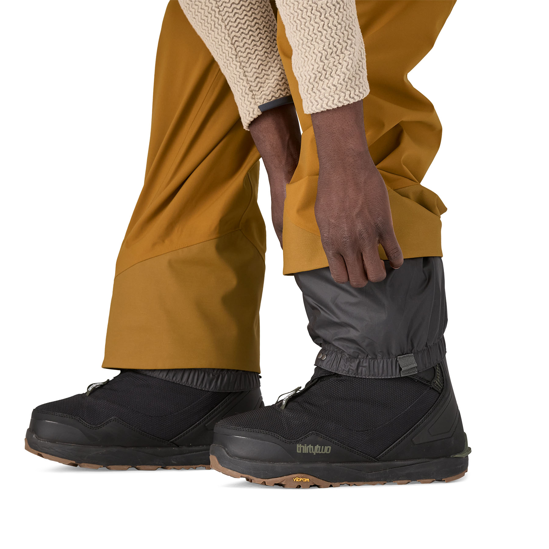 Gaiters seal out snow; tough scuff guards protect inside of legs and bottom hem