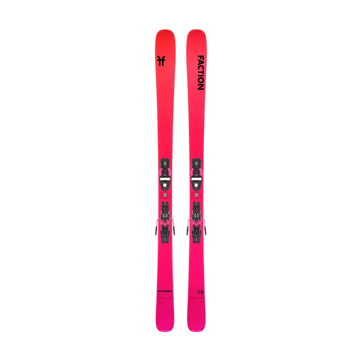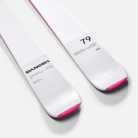 The Faction Dancer 79 Ti SYS Pink skis are powerful and precise piste skis with Titanal reinforcement and pre-mounted bindings, perfect for advanced skiers.